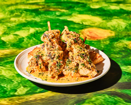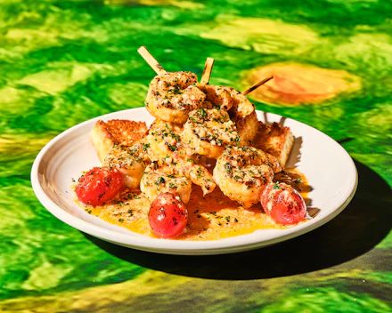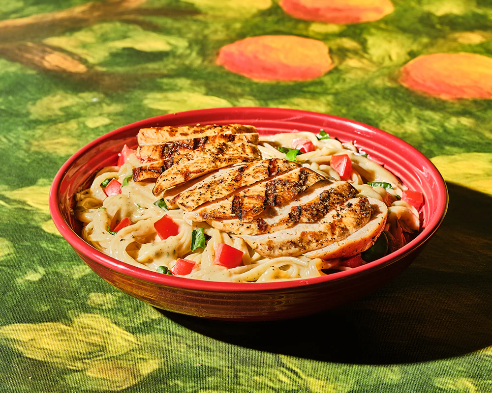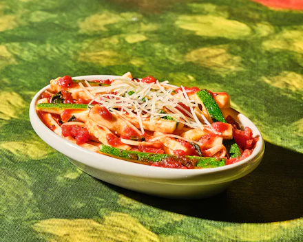 Linguine tossed in Crushed tomatoes, garlic, olive oil and basil. Topped with grilled chicken or shrimp.
